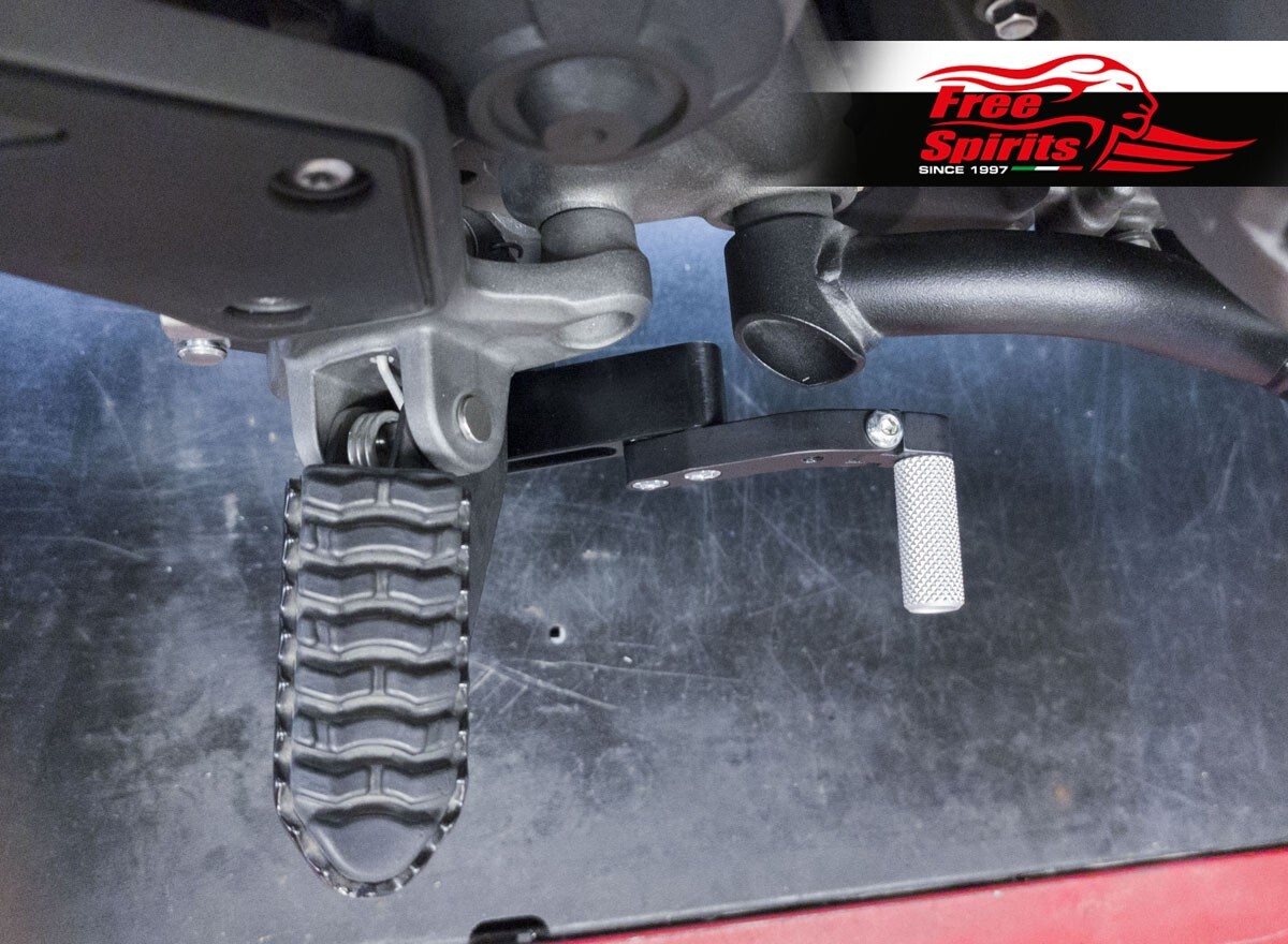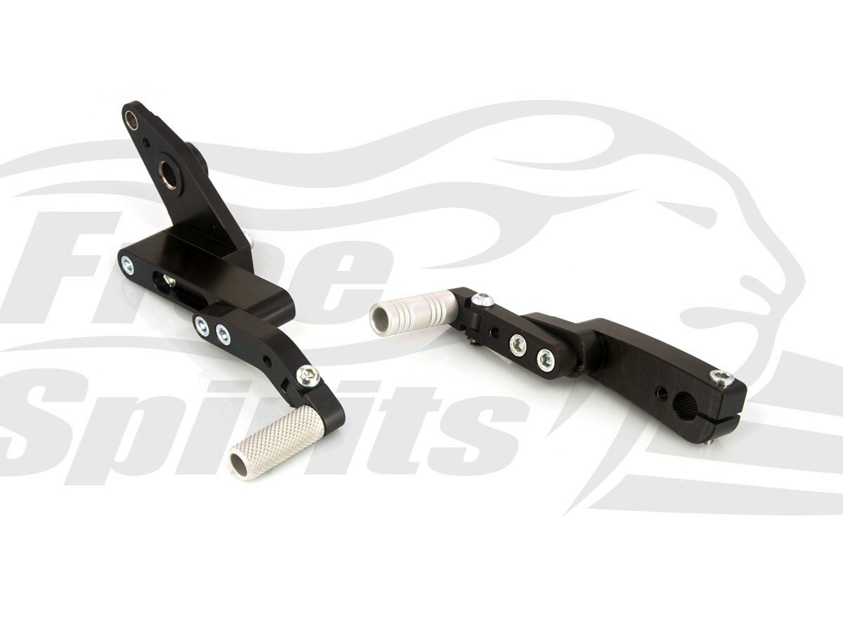Bolt on kit, mounts directly on the foot rests and replaces completely the original levers.